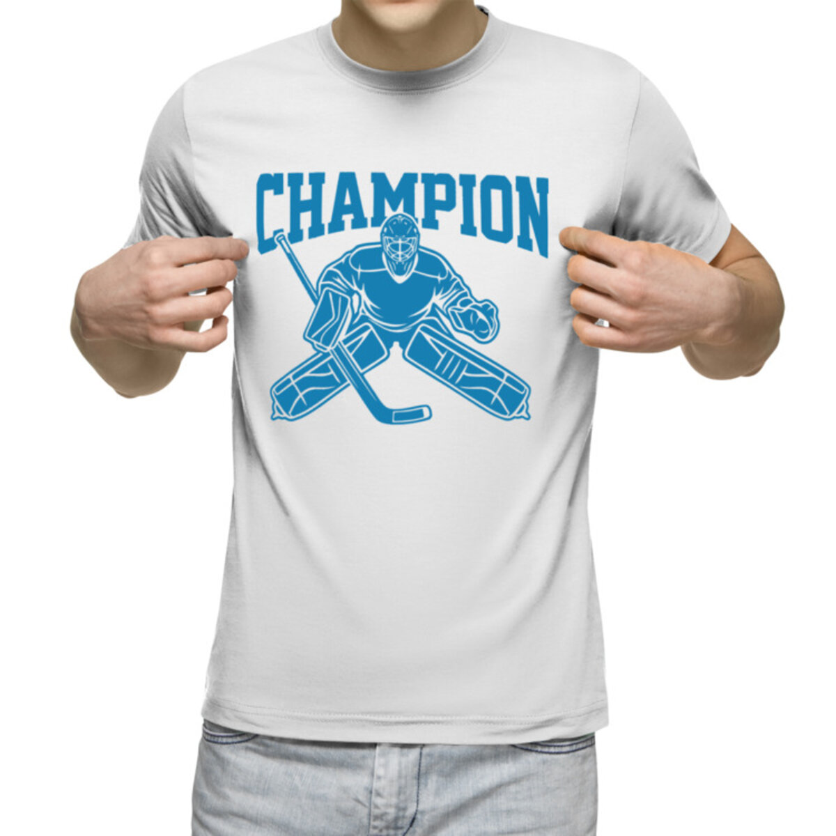 Мужская футболка «Хоккеист, вратарь, чемпион спорта. Победитель»