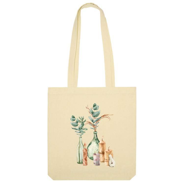 Сумка «Бохо цветы в вазе листья эвкалипта принт» цвет бежевый