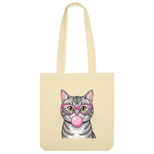 Сумка «Кот в розовых очках с жвачкой» цвет бежевый