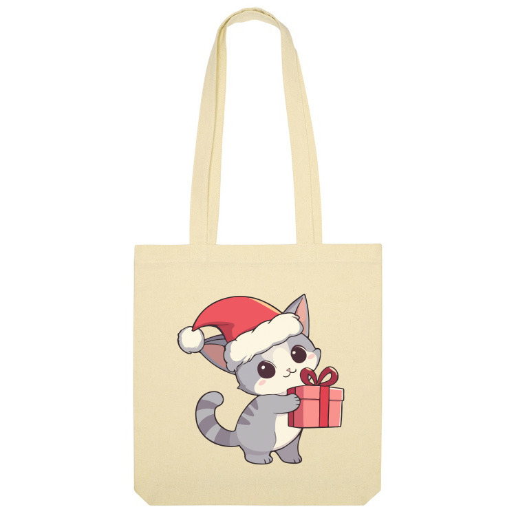 Сумка «Кот в стиле аниме с подарком. Новый год» цвет бежевый