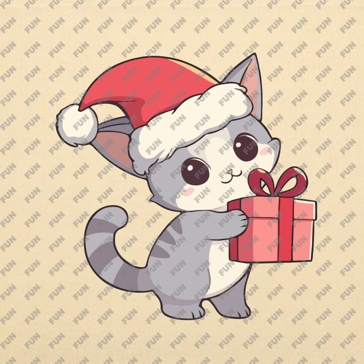 Детская футболка «Кот в стиле аниме с подарком. Новый год»