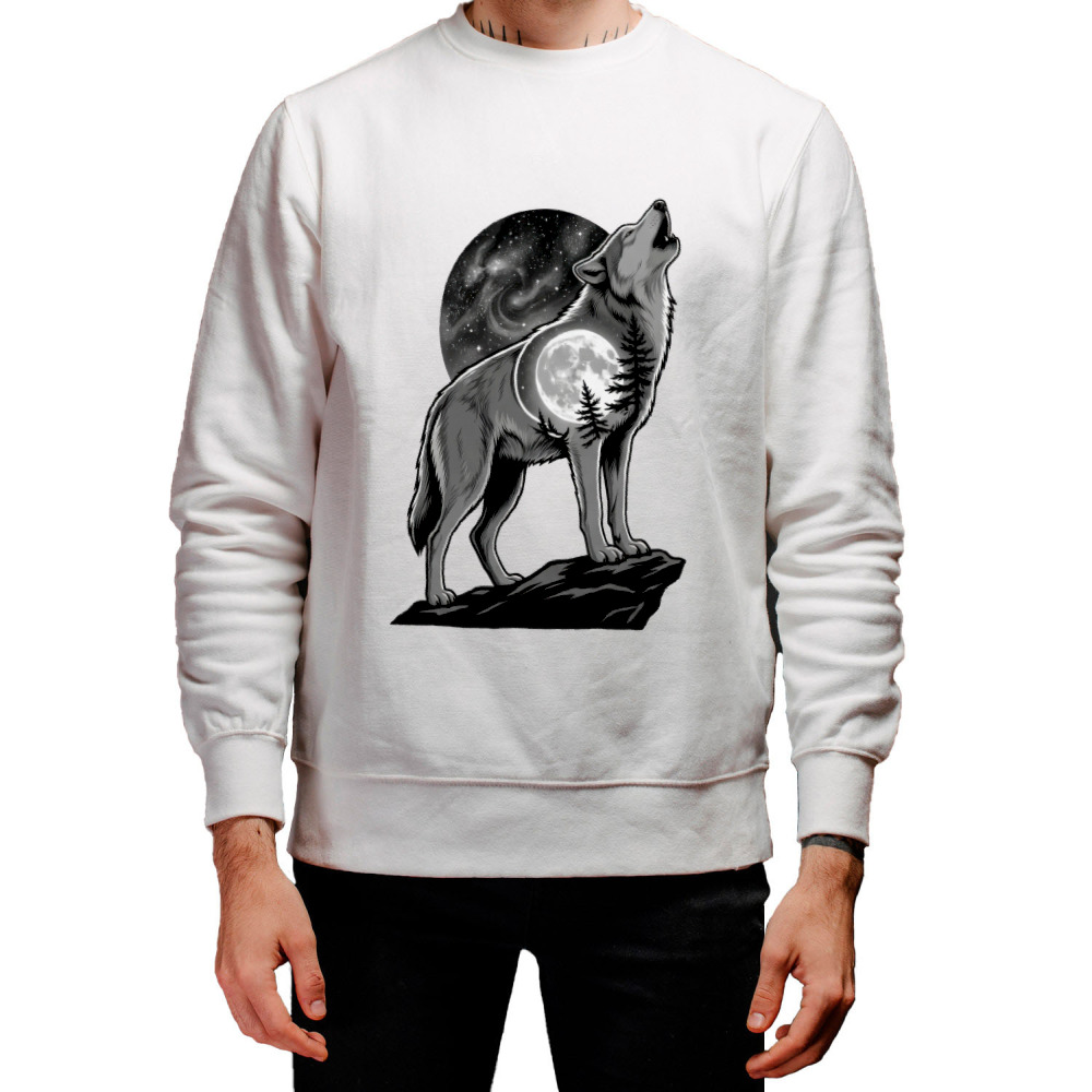 Мужской свитшот «Волк воет на луну, одиночество»