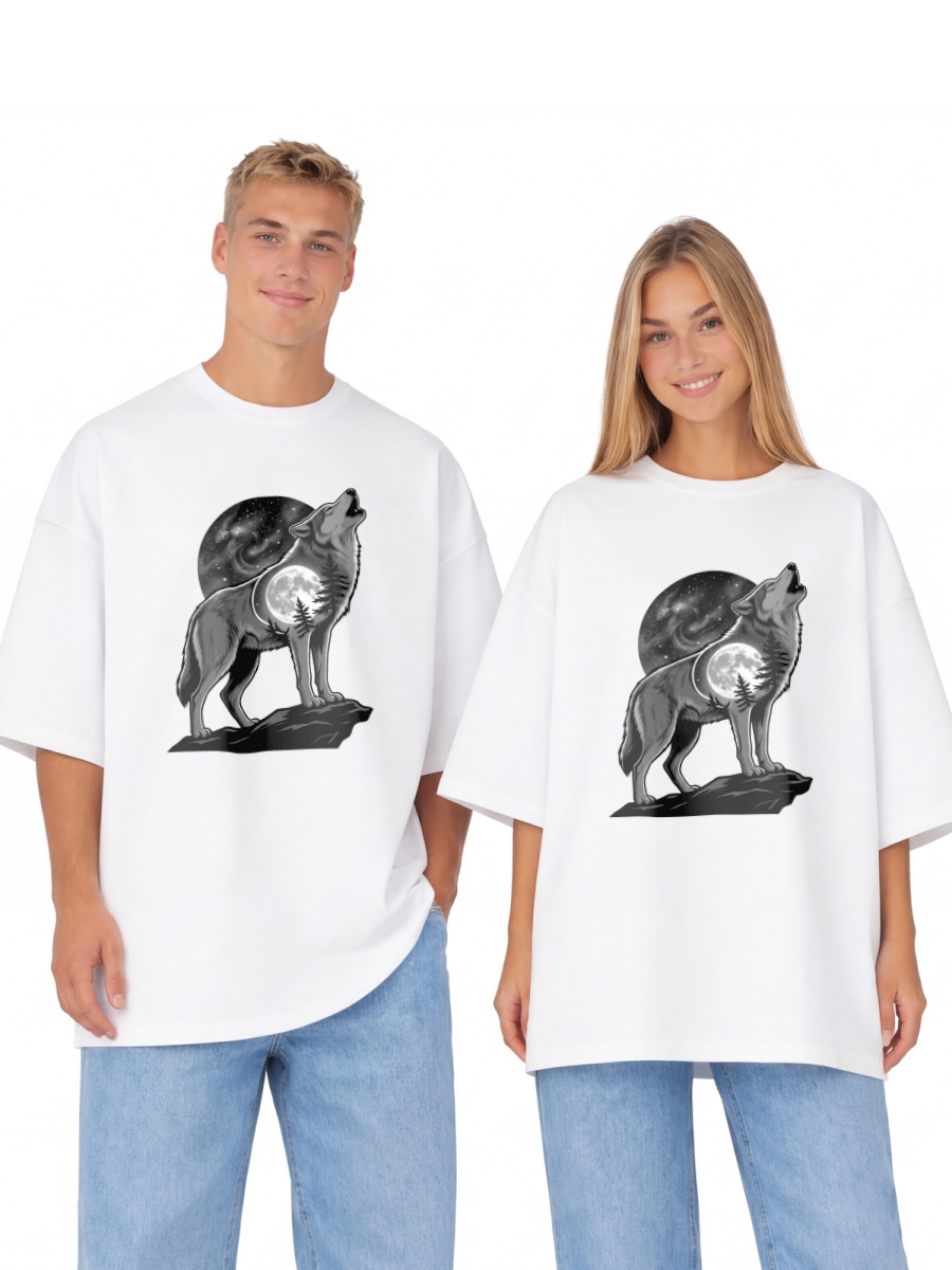 Футболка оверсайз «Волк воет на луну, одиночество»