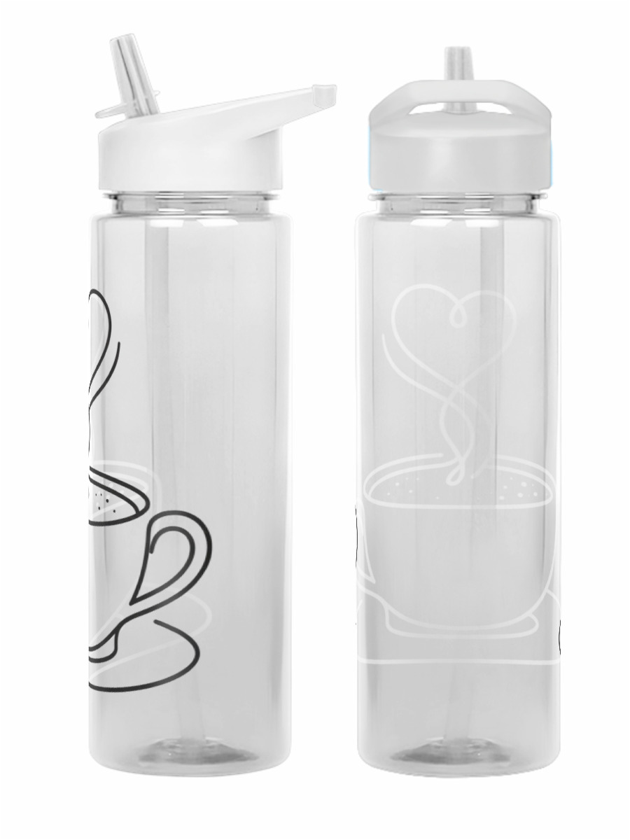Бутылка спортивная «Футболка с принтом чашки кофе и сердцем» цвет белый