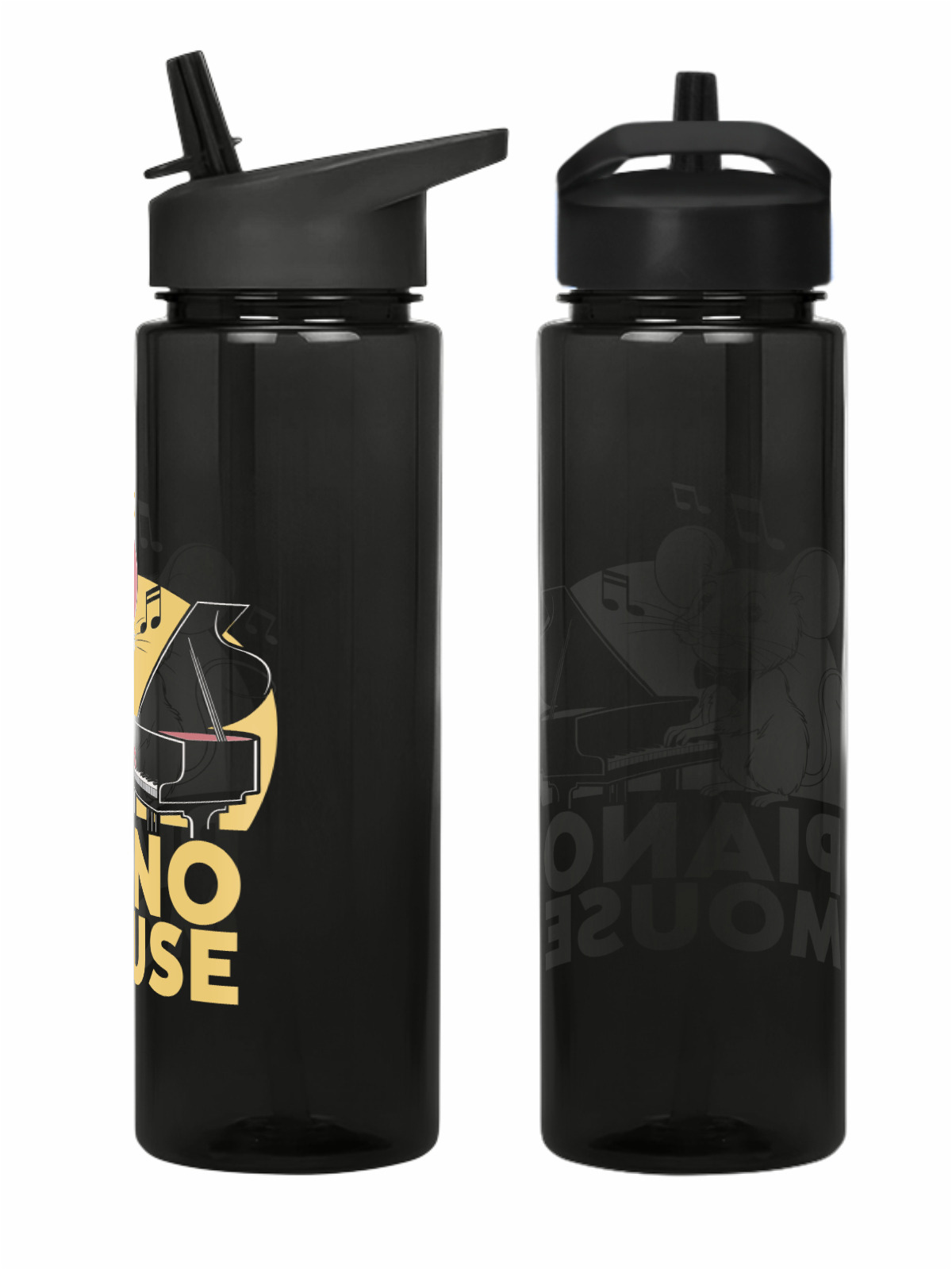 Бутылка спортивная «Мышка-пианистка - Piano mouse» цвет черный