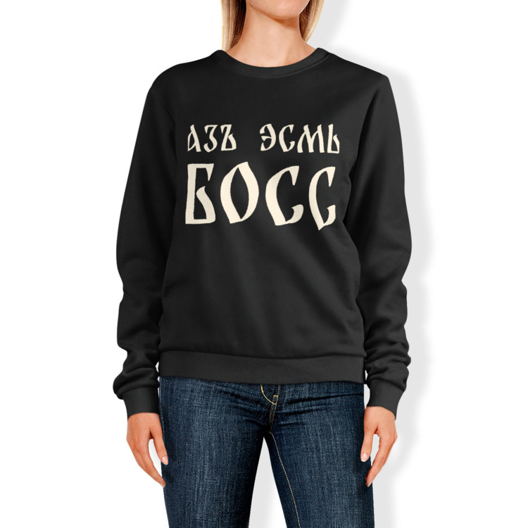 Женский свитшот «Аз есмь босс подарок начальнику мем надпись прикол»