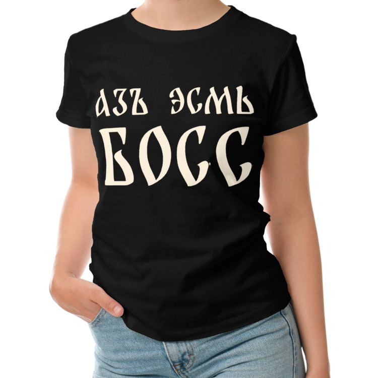 Женская футболка «Аз есмь босс подарок начальнику мем надпись прикол»