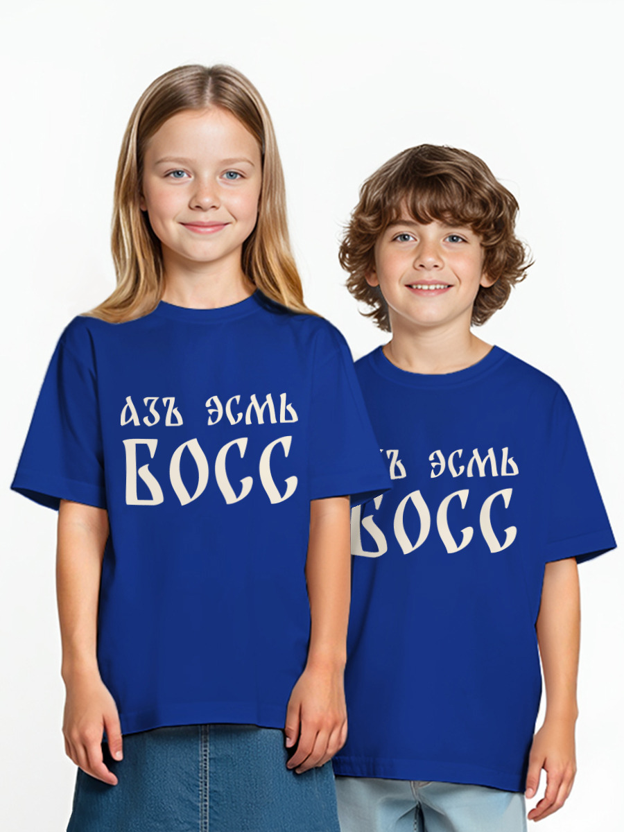 Детская футболка «Аз есмь босс подарок начальнику мем надпись прикол»