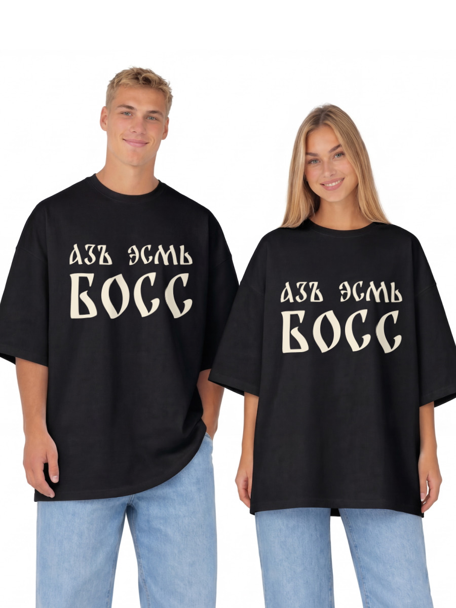 Футболка оверсайз «Аз есмь босс подарок начальнику мем надпись прикол»