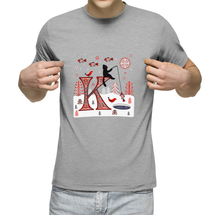 Мужская футболка «Буква К и кот. Мезенские мотивы.»