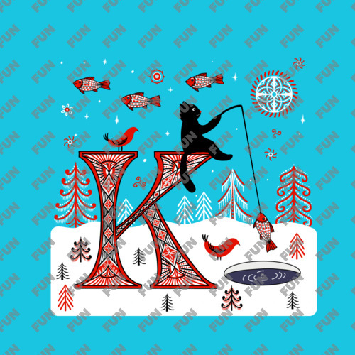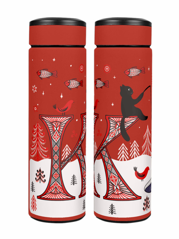 Термос «Буква К и кот. Мезенские мотивы.»