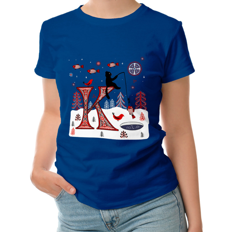 Женская футболка «Буква К и кот. Мезенские мотивы.»