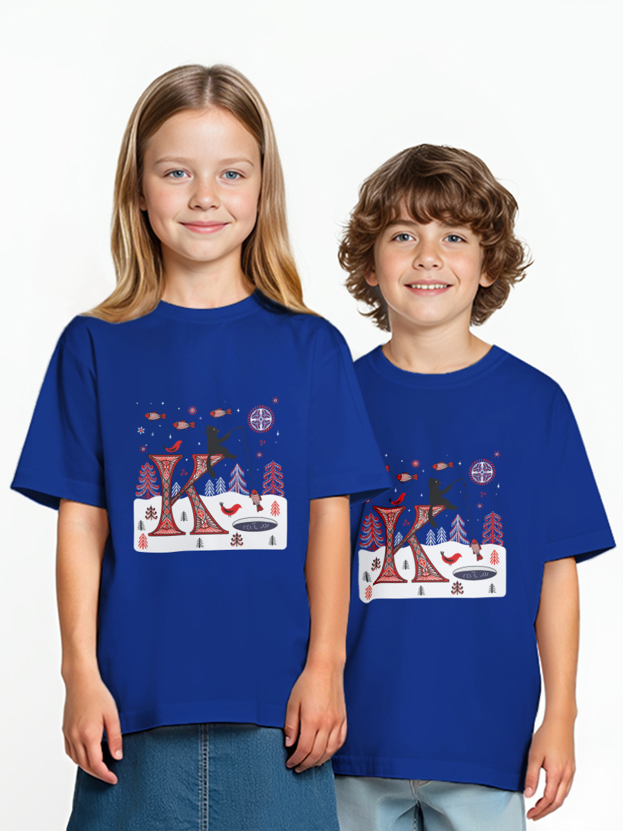 Детская футболка «Буква К и кот. Мезенские мотивы.»