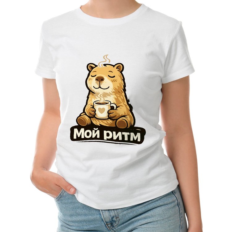 Женская футболка «Капибара с чаем Мой ритм»