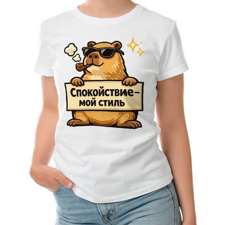 Женская футболка «Капибара с трубкой»