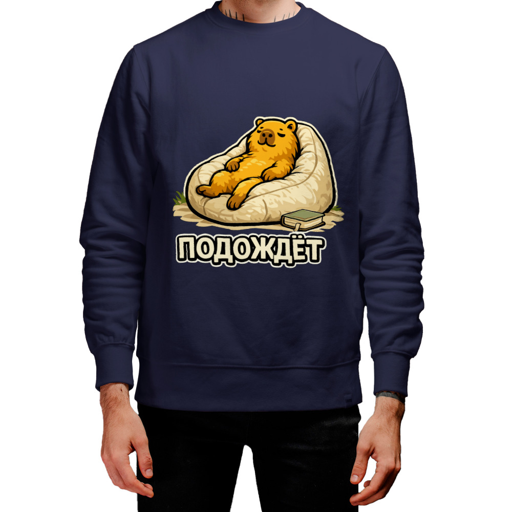 Мужской свитшот «Капибара в кресле ПОДОЖДЁТ»