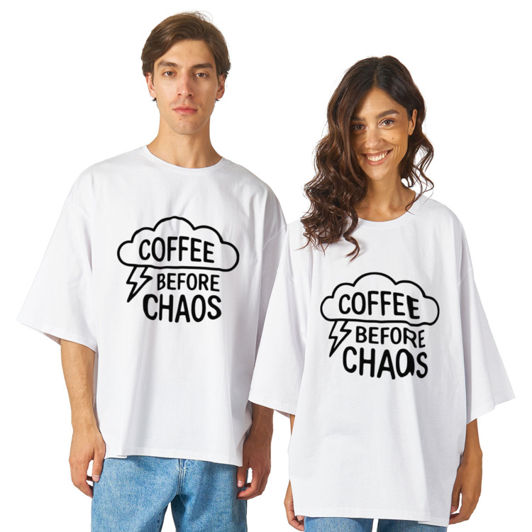 Футболка оверсайз «Кофе перед хаосом дня»
