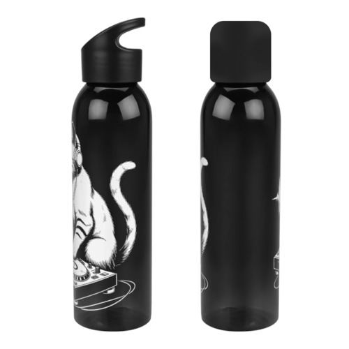Бутылка для воды «Кот-диджей за пультом» цвет черный