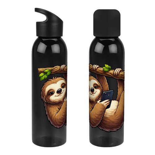 Бутылка для воды «Ленивец с телефоном» цвет черный