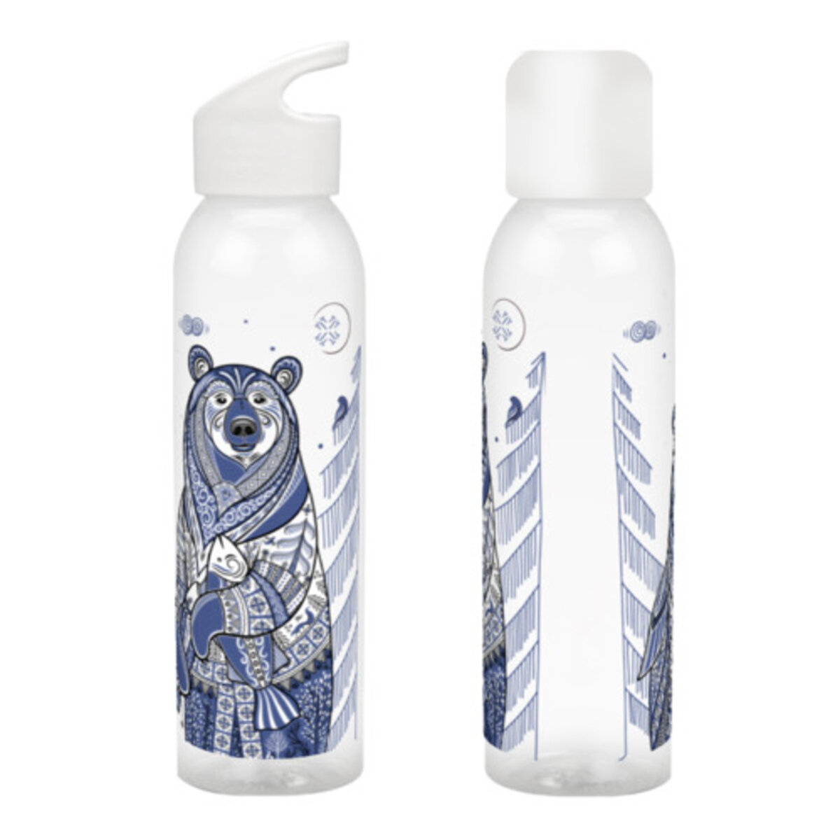 Бутылка для воды «Медведь и Медведица. Мезенские мотивы (т)» цвет белый