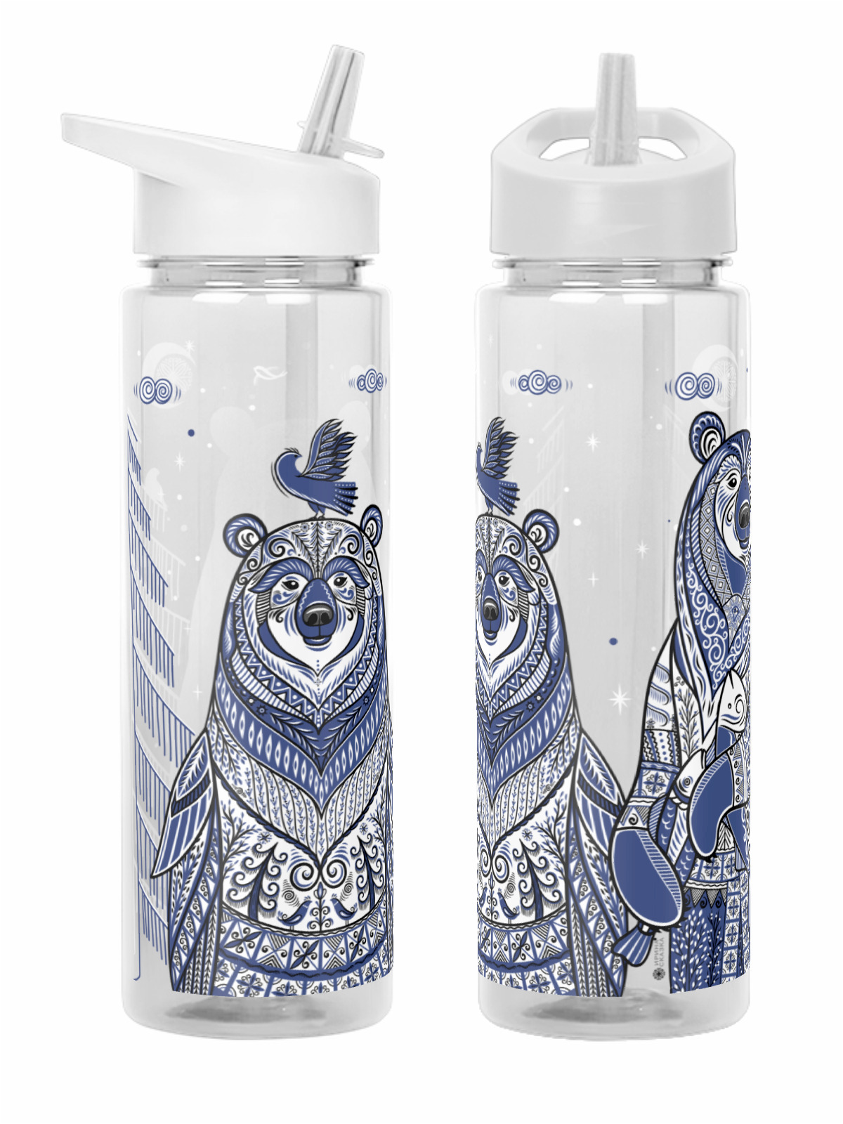 Бутылка спортивная «Медведь и Медведица. Мезенские мотивы»