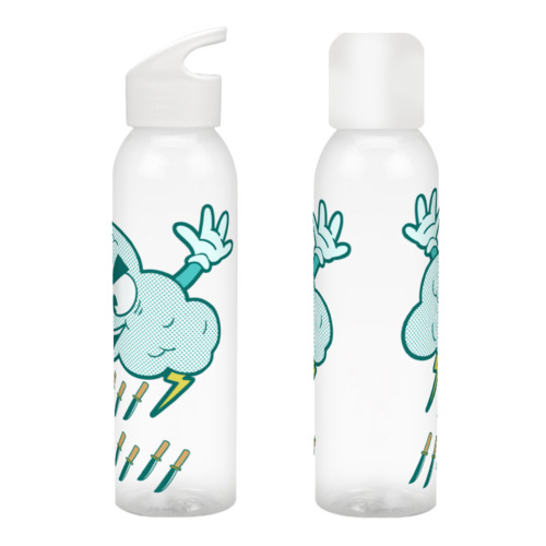 Бутылка для воды «Облако метает ножи,юмор,прикол,нож,молния» цвет белый