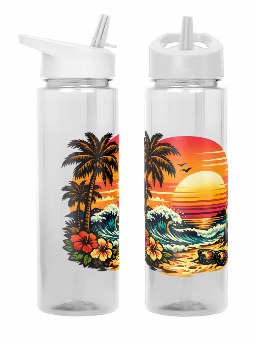 Бутылка для воды «Ретро-серфинг на закате» цвет белый