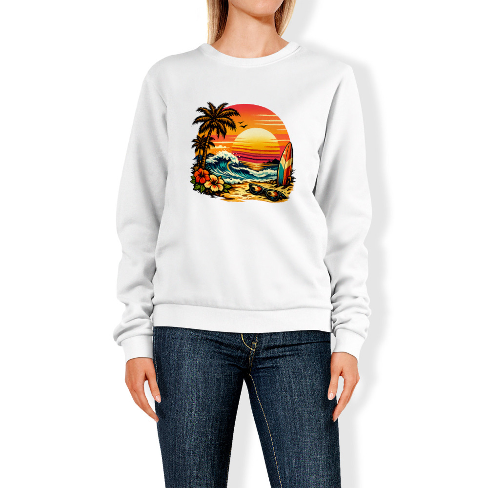 Женский свитшот «Ретро-серфинг на закате»
