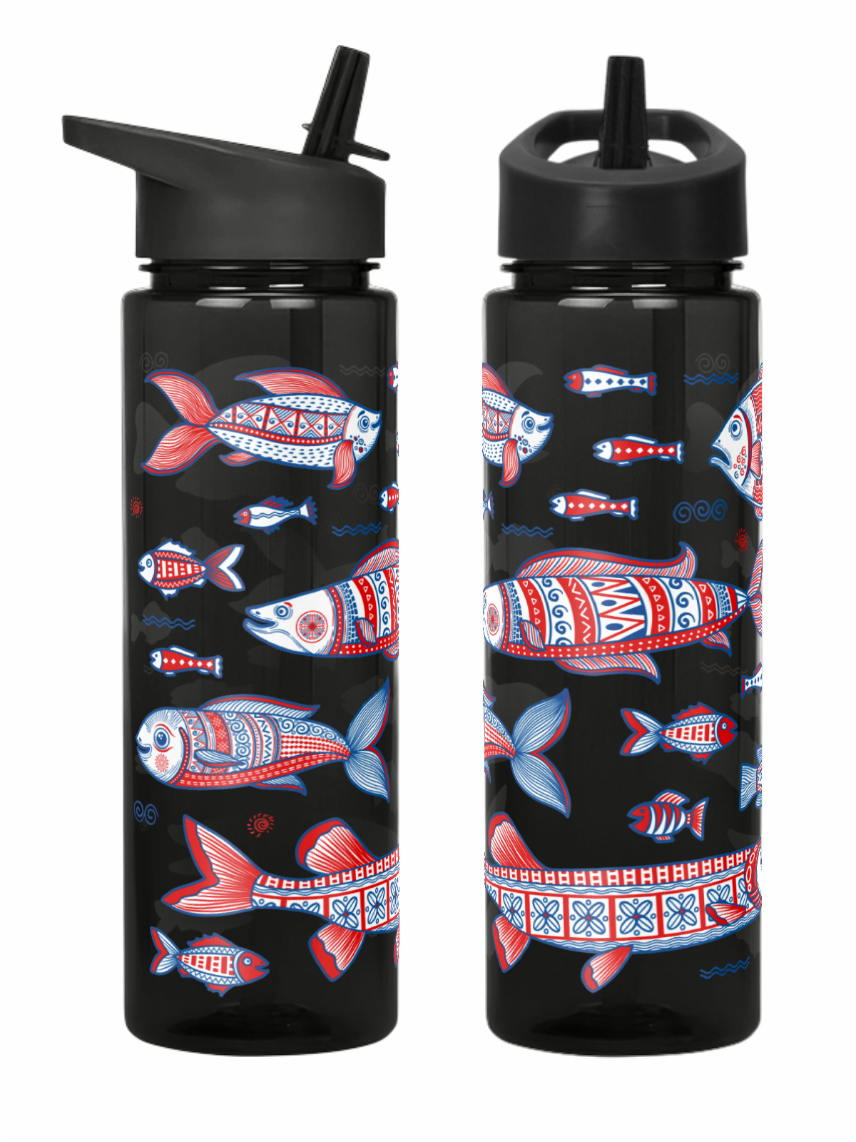 Бутылка для воды «Рыбы. Мезенские мотивы» цвет черный