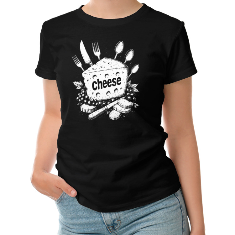 Женская футболка «Сыр с приборами и виноградом»