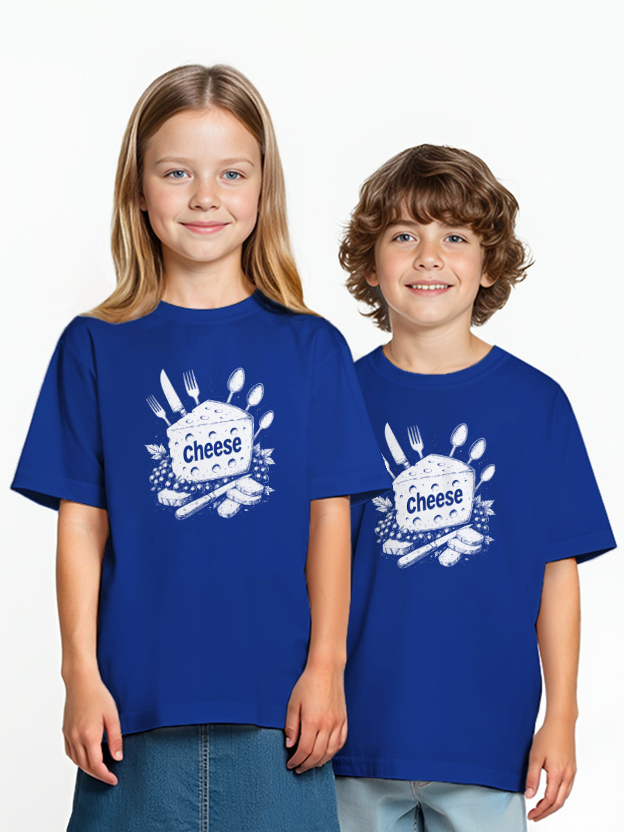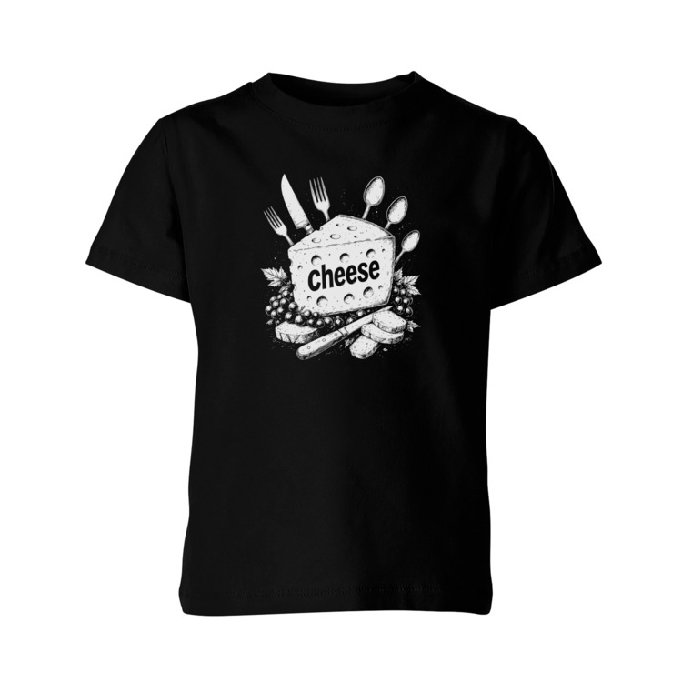 Детская футболка «Сыр с приборами и виноградом»