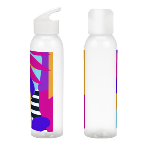 Бутылка для воды «Яркая абстракция с пальмой и завитками» цвет белый