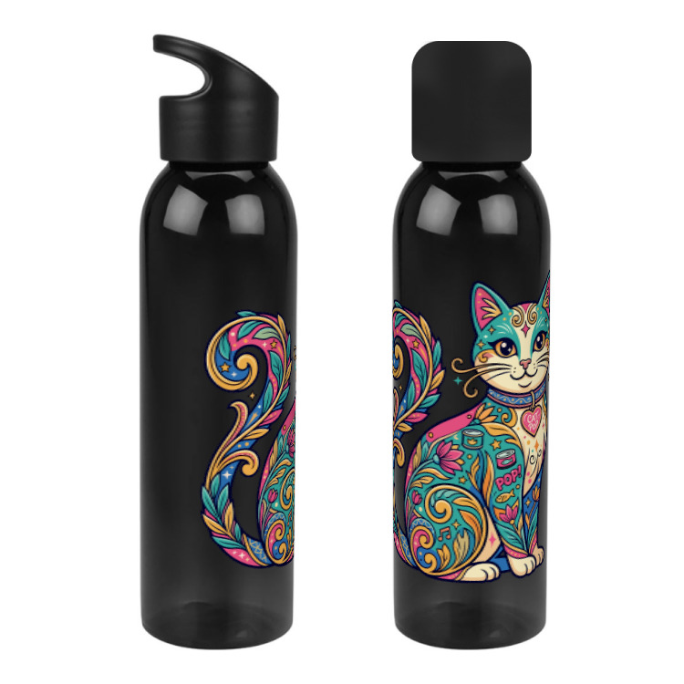 Бутылка для воды «Яркая кошка в стиле поп-арт» цвет черный
