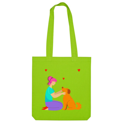 Сумка «Девушка гладит рыжую собаку, вокруг сердца»
