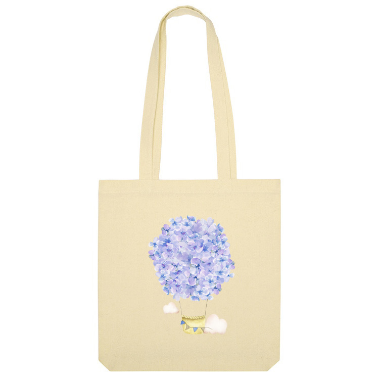 Сумка «Воздушный шар, цветы сиреневой гортензии в облаках»