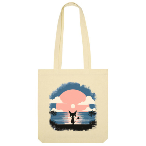 Сумка «Черный кот на пляже на фоне заката»