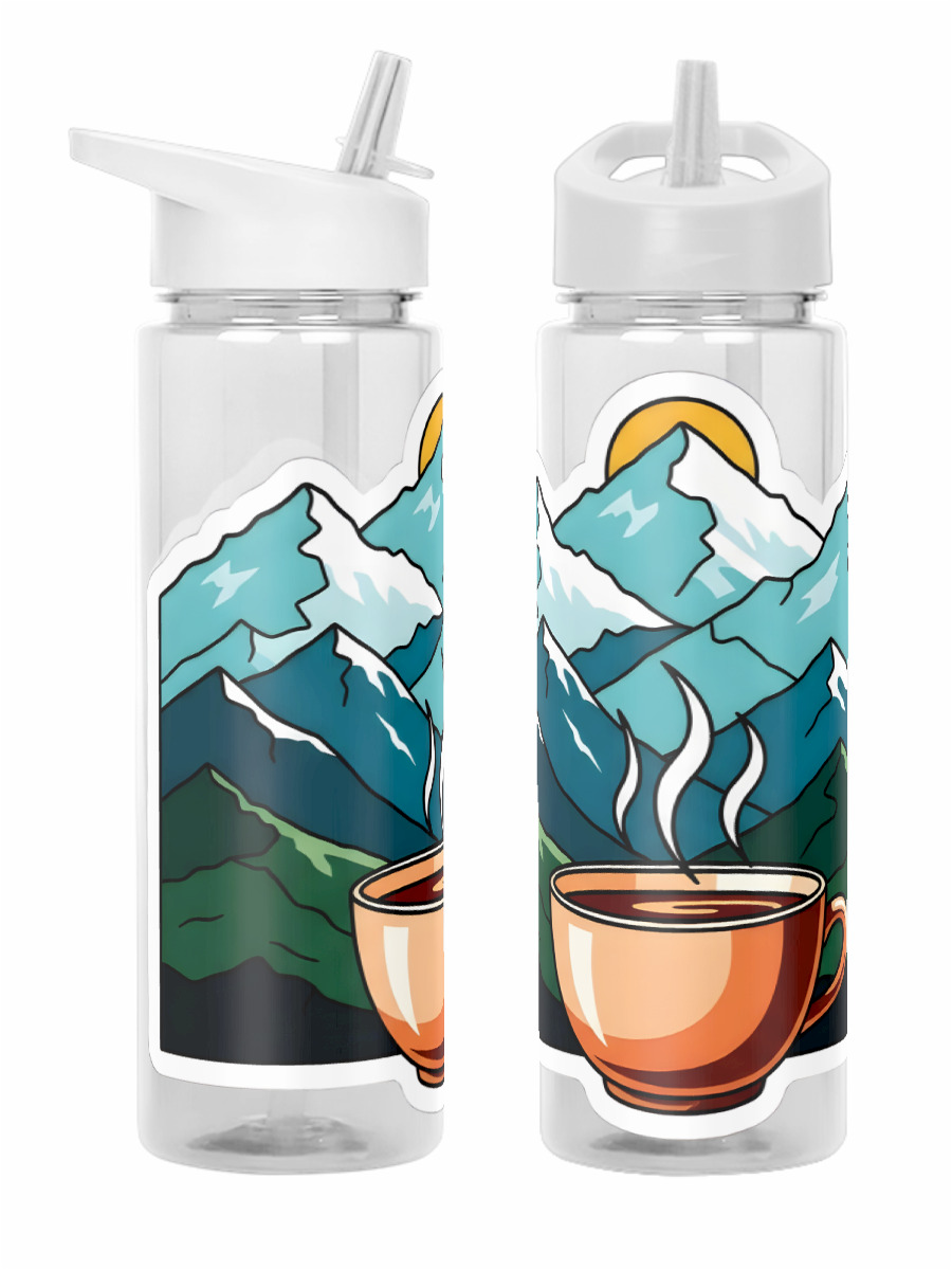Бутылка спортивная «Чашка горячего чая на фоне горного пейзажа»