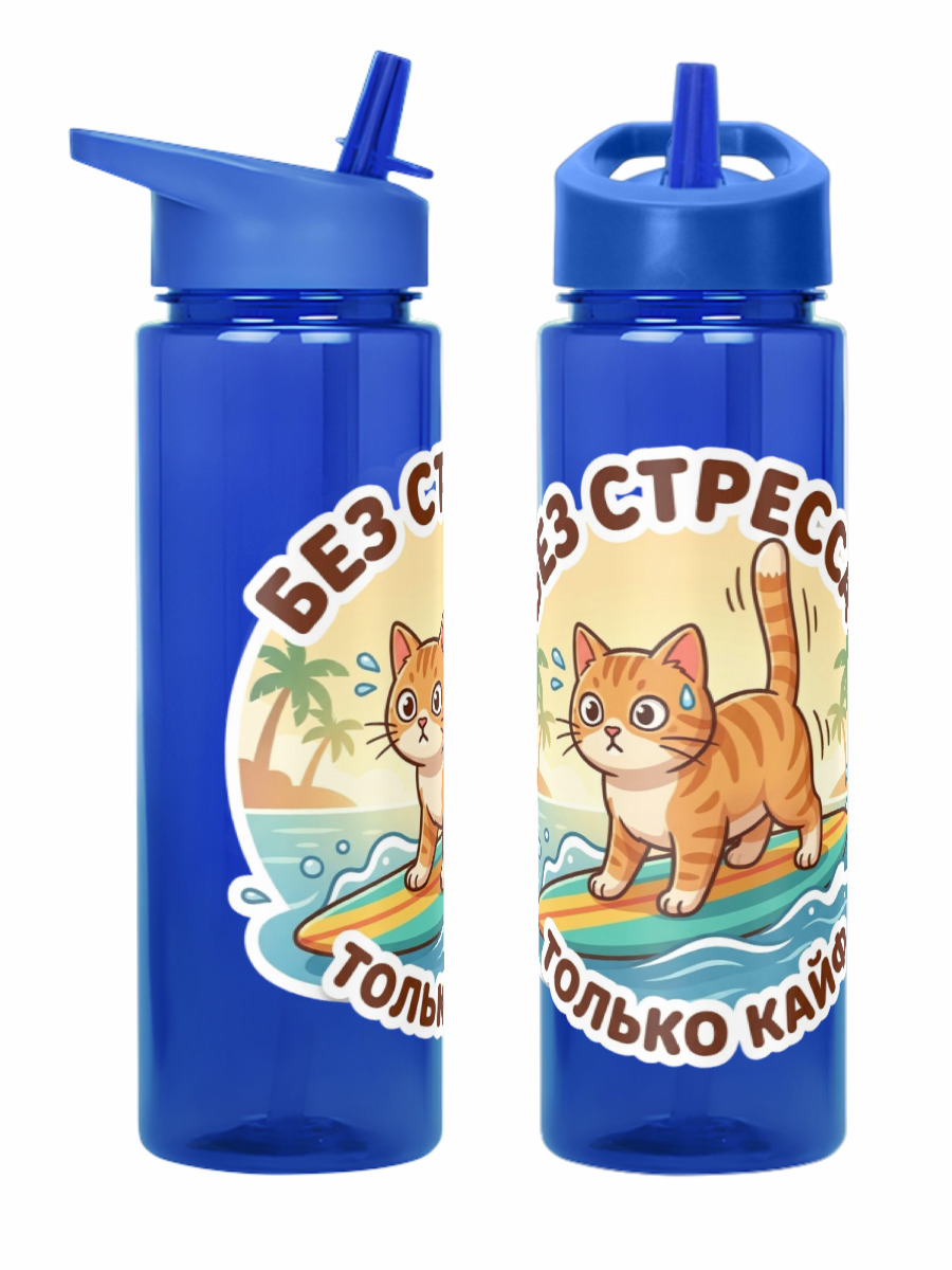 Бутылка спортивная «Кот серфер принт летний дизайн»