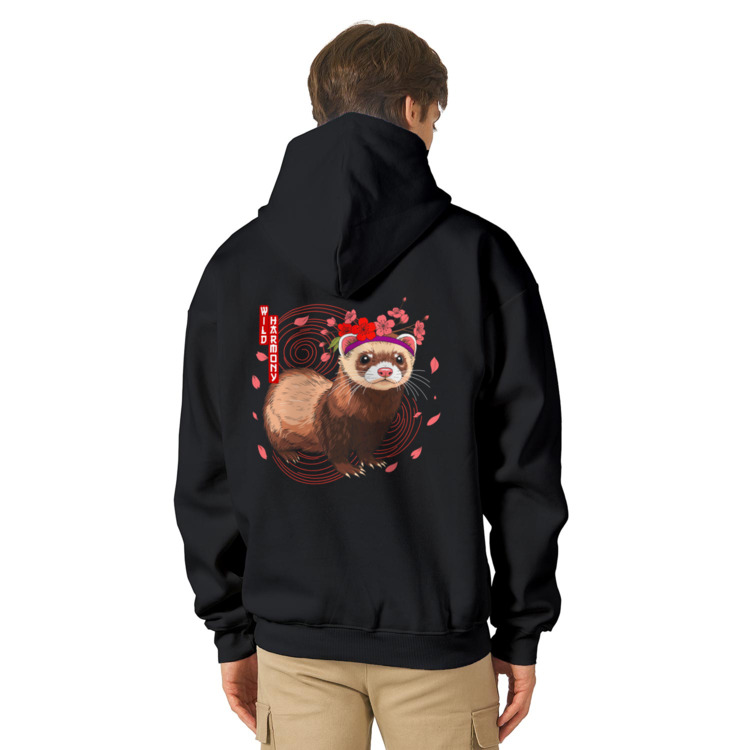 Худи оверсайз «Хорек и цветы сакуры - Дикая гармония»