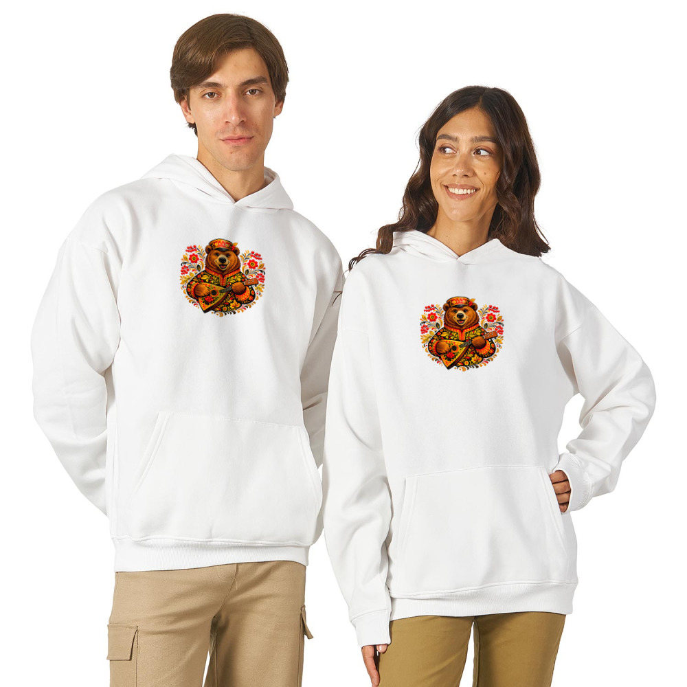 Худи оверсайз «Хохлома: узор медведь с балалайкой»