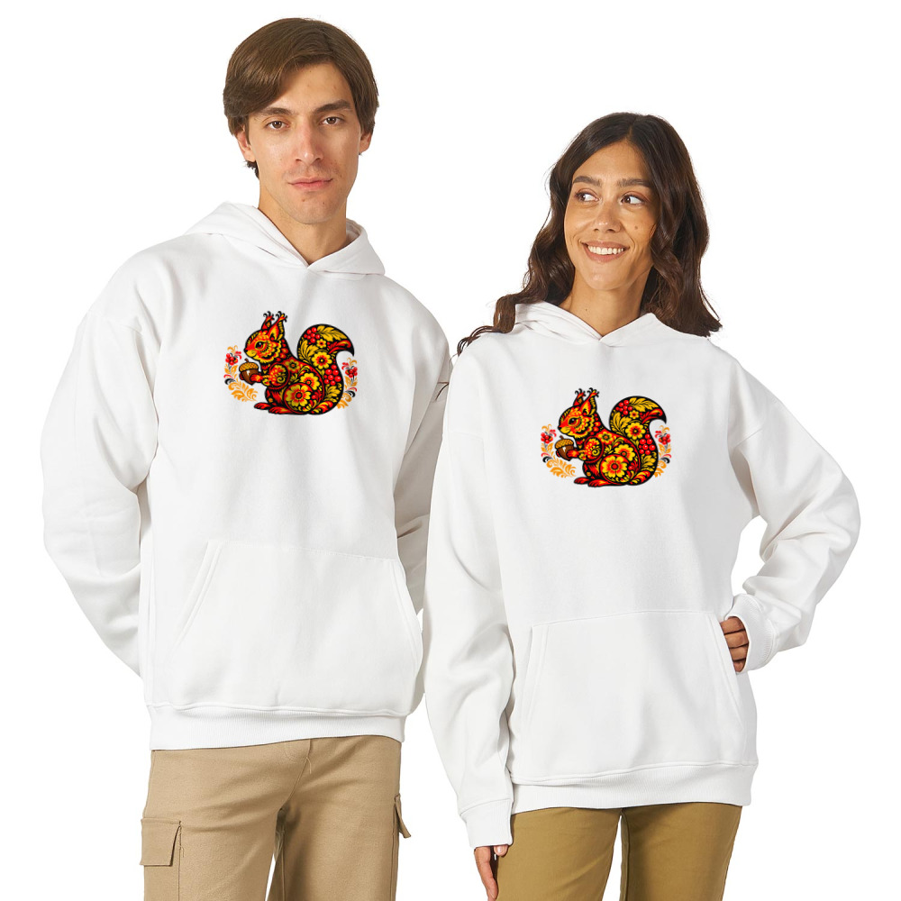 Худи оверсайз «Белка с жёлудем-узор русская хохлома»