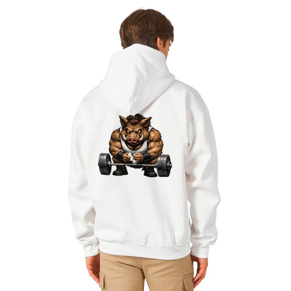 Худи оверсайз «Сильный кабан пауэрлифтер со штангой»
