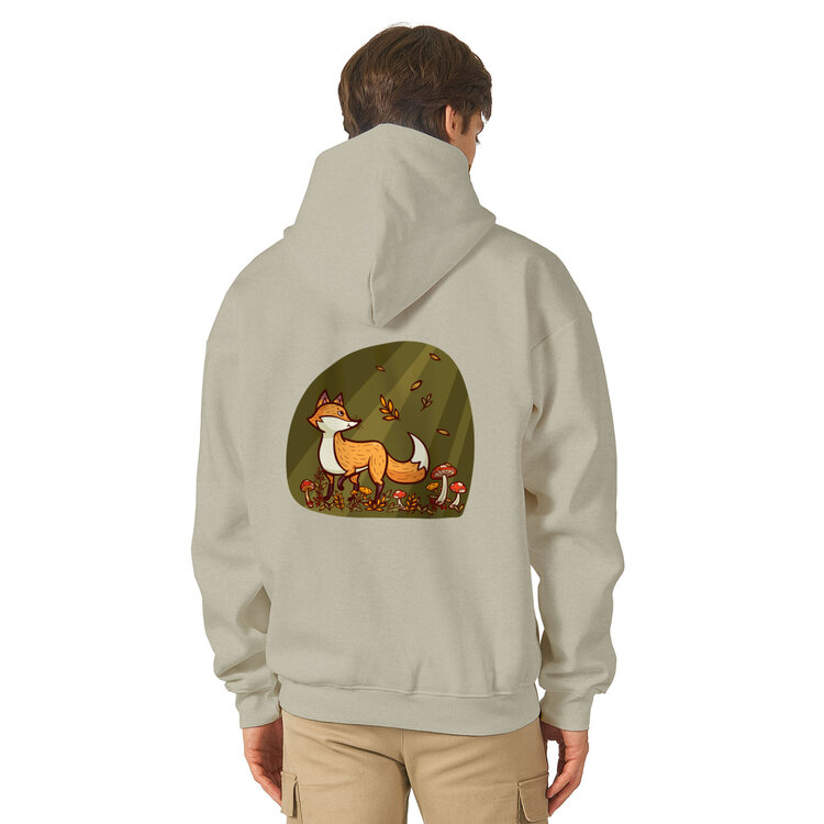 Худи оверсайз «Лиса в осеннем лесу, осенние листья и гриб мухомор»