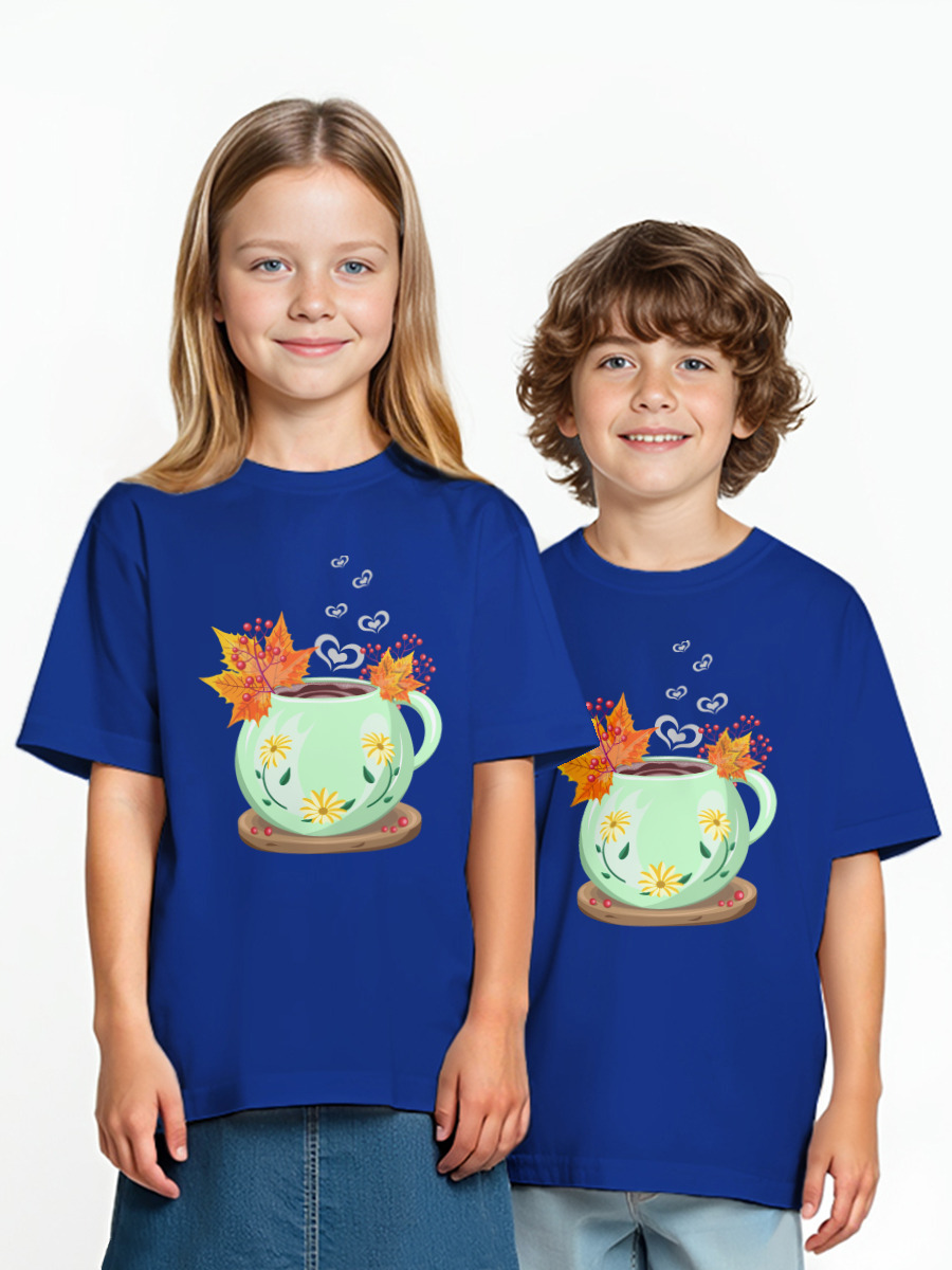 Детская оверсайз футболка «Кружка кофе с кленовыми листьями» @Miracle22ofDesign