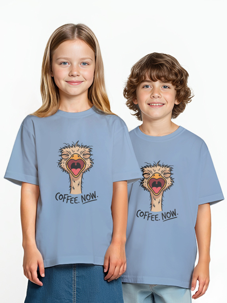 Детская оверсайз футболка «Coffee now! Сонный страус, шутка про кофе» @Ellionn