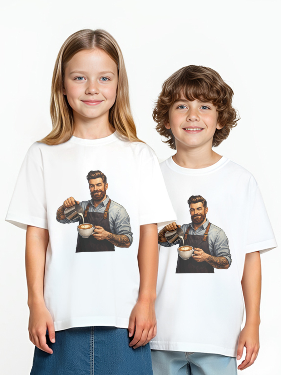 Детская оверсайз футболка «Брутальный бариста готовит кофе» @Gala