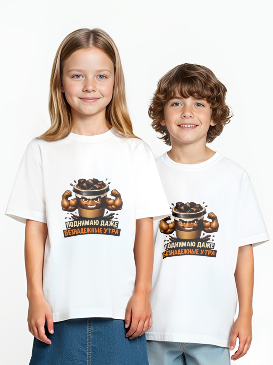 Детская оверсайз футболка «Кофейное Утро: Бодрый Смайл» @paveltarasenko