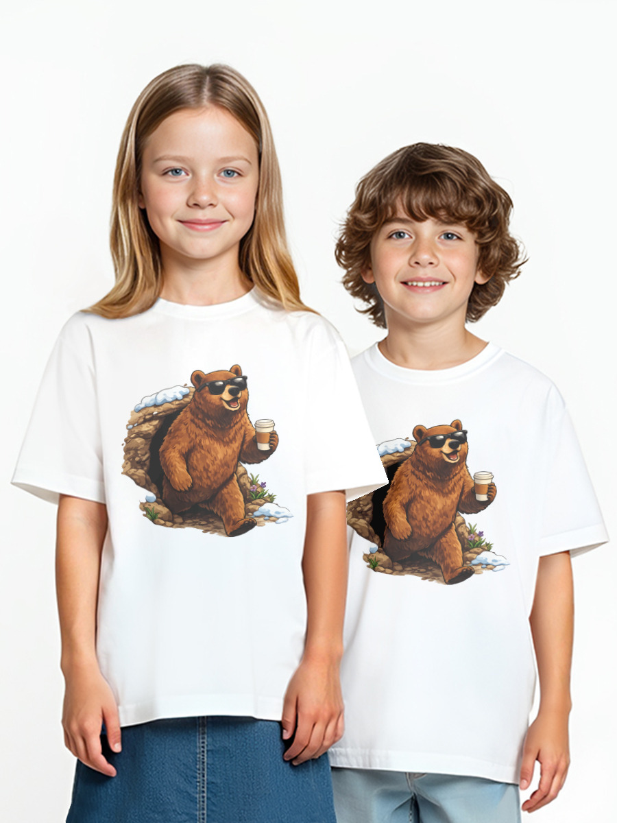 Детская оверсайз футболка «Медведь выходит из берлоги с кофе весной» @Gala