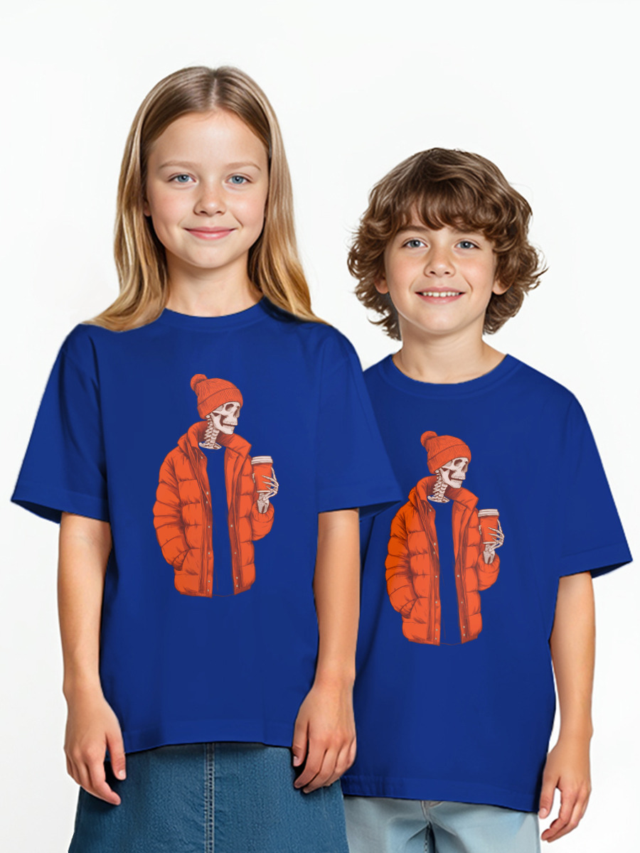 Детская оверсайз футболка «Скелет с кофе»