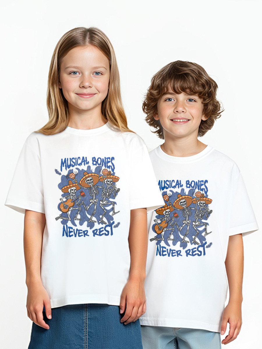 Детская оверсайз футболка «Скелеты музыканты мексиканцы на белом»